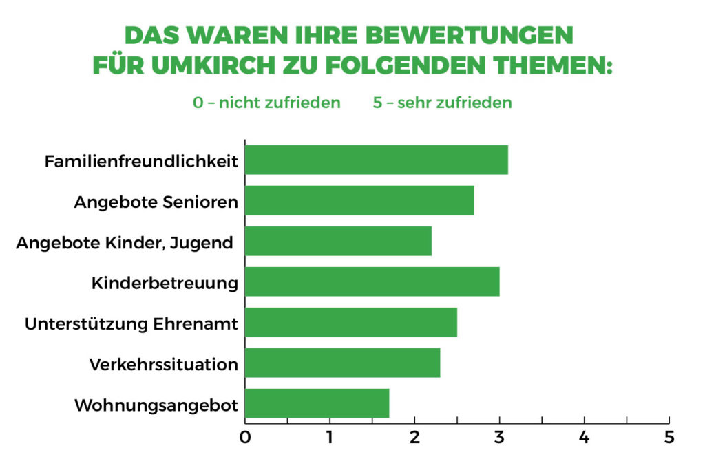 Bis Mitte März konnten Sie sich an meiner Bürgerumfrage beteiligen. Das waren Ihre Bewertungen für Umkirch zu folgenden Themen